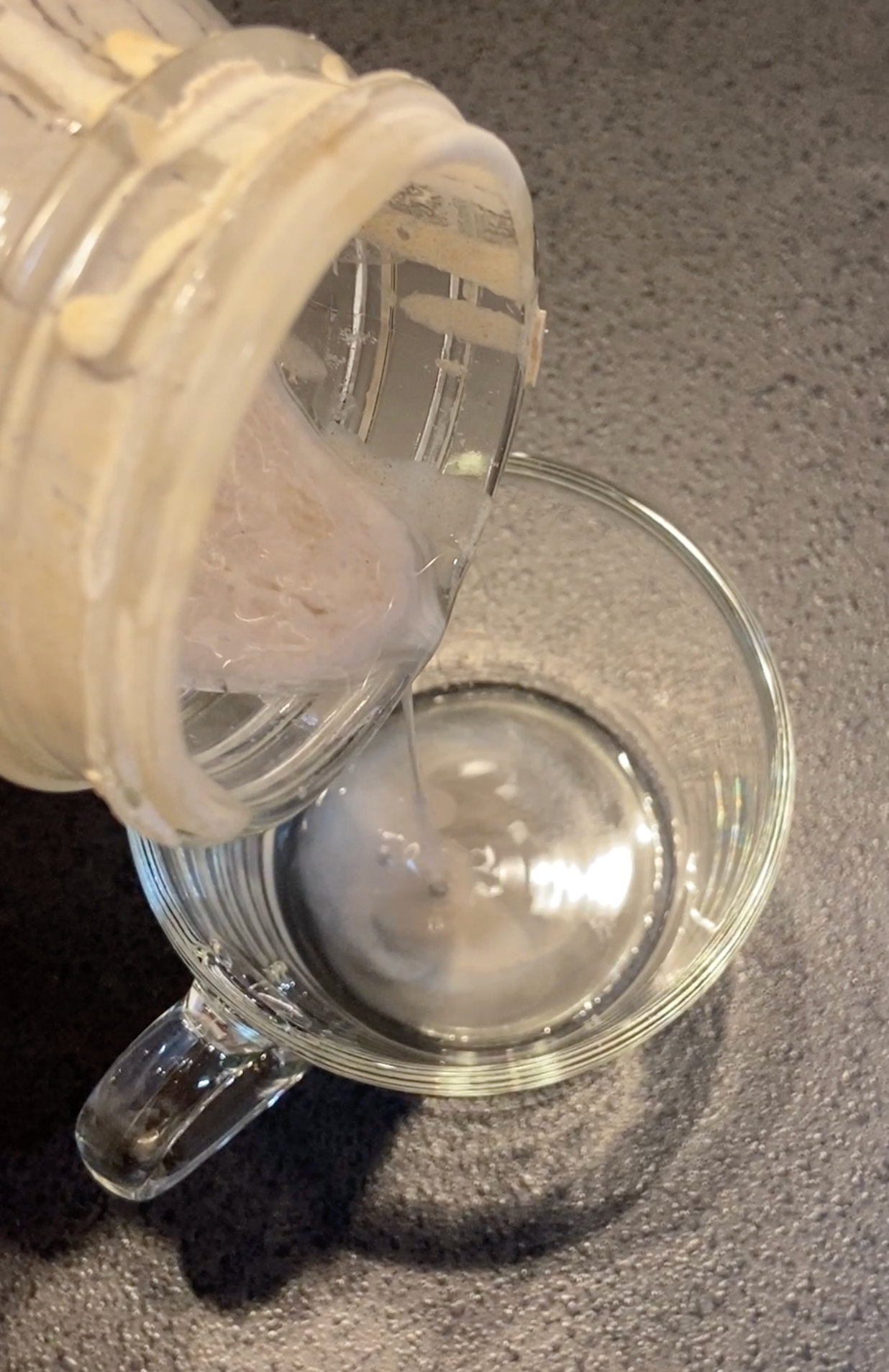 元気を取り戻すには、まず、上澄みを捨て、底の方からサワー種をよく混ぜてあげます。