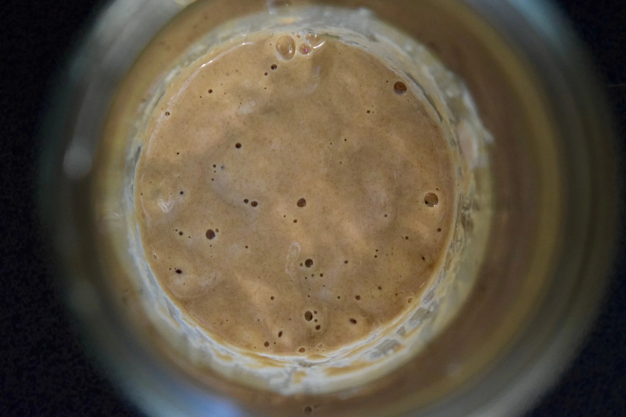 レーズン種の感覚で「あと30分待てばもっと大きくなるはず」とのんびり構えている間に、サワー種の中では酵素が暴れまわり、せっかく繋がったグルテンを食い破っています。